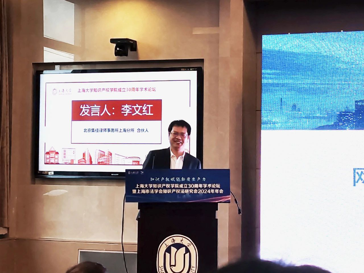 壹号娱乐上海分所主任、高级知识产权师李文红博士应邀出席大会,并在“释放知识产权价值 赋能新质生产力”分论坛上发表演讲,与来自众多高校的专家学者和业界代表共同就知识产权价值的释放与赋能新质生产力的路径进行了深入探讨。